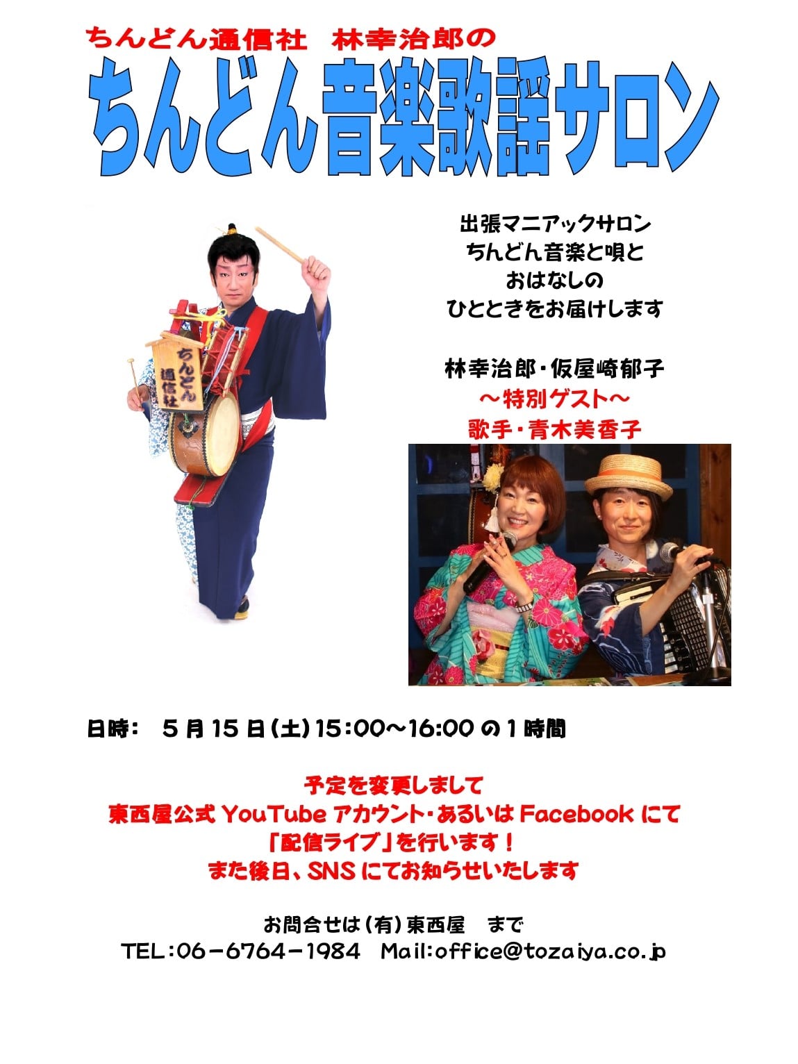 5月15日(土)の「ちんどん音楽歌謡サロン」は配信ライブとさせていただきます。
