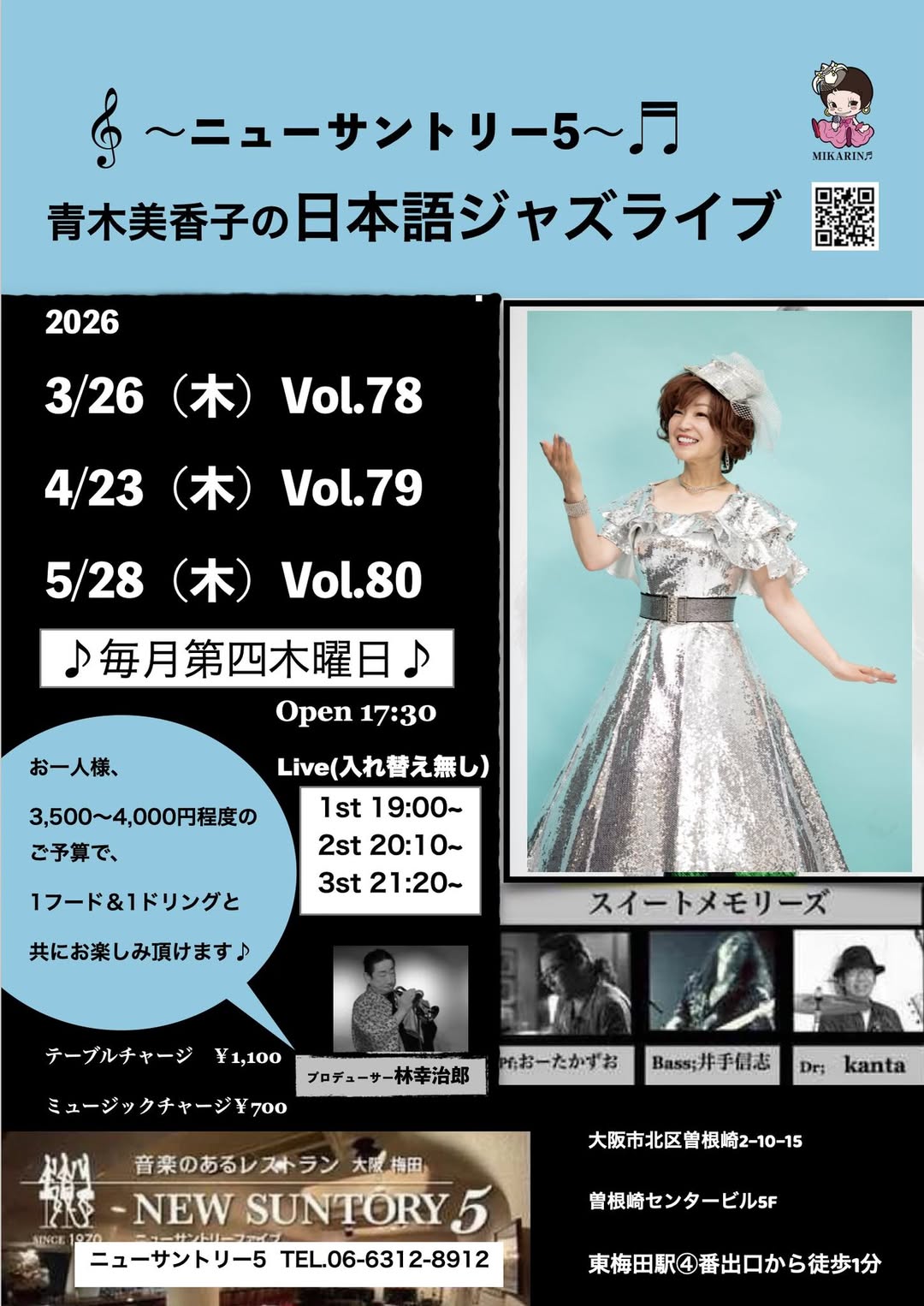 2026/3/26(木)ニューサントリー5日本語ジャズライブ